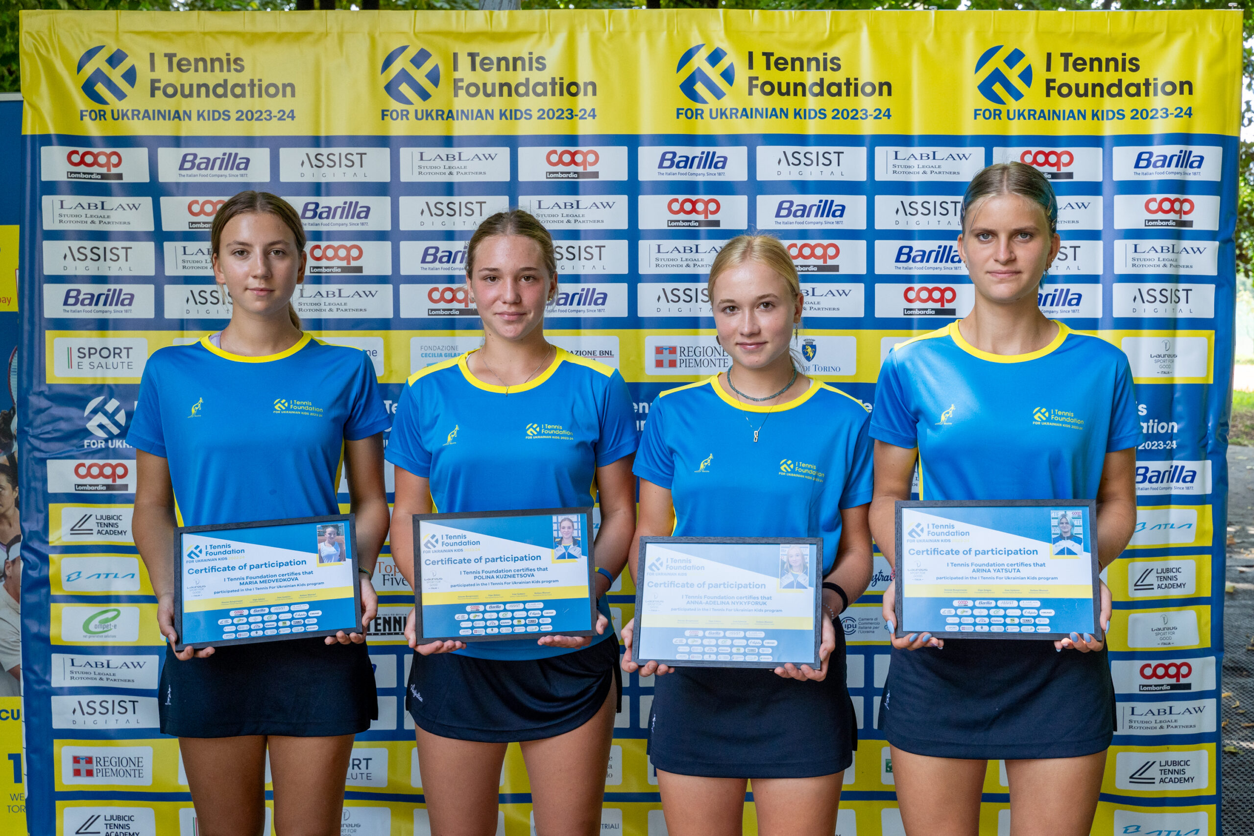 I Tennis Foundation for Ukrainian Kids è un programma umanitario realizzato grazie ai partner Assist Digital, Barilla, Coop Lombardia, LabLaw e Ljubicic Tennis Academy, in collaborazione con l’Ukrainian Tennis Federation e Laureus Italia, con il contributo di Fondazione Compagnia di San Paolo, Fondazione CRT, Fondazione Cecilia Gilardi e Fondazione BNL, e con il patrocinio di Sport e Salute, Regione Piemonte, Città di Torino e Professional Tennis Registry.