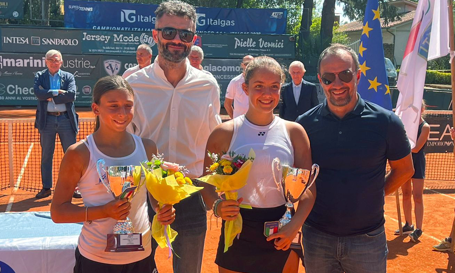 Le punte più alte di queste prestazioni le hanno offerte tre fantastiche ragazze. Iniziamo dalle 2008 Alessandra Fiorillo e Francesca Galli che, al Tennis Club Schio (Vicenza), si sono laureate Campionesse d’Italia in doppio superando in una splendida finale Ilary Pistola (che ha invece vinto la finale in singolo contro Carla Giambelli) e Fabiola Marino 6-1/3-6/12-10.
