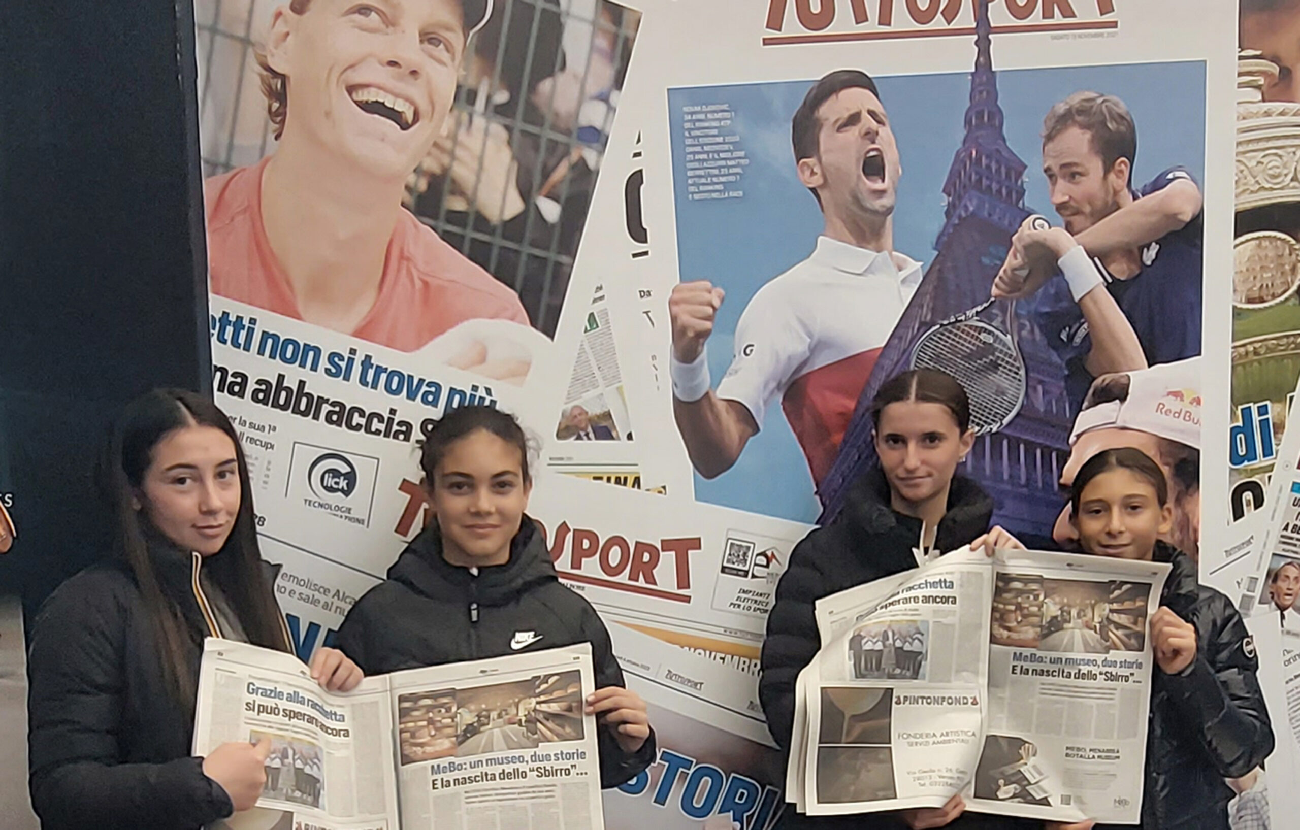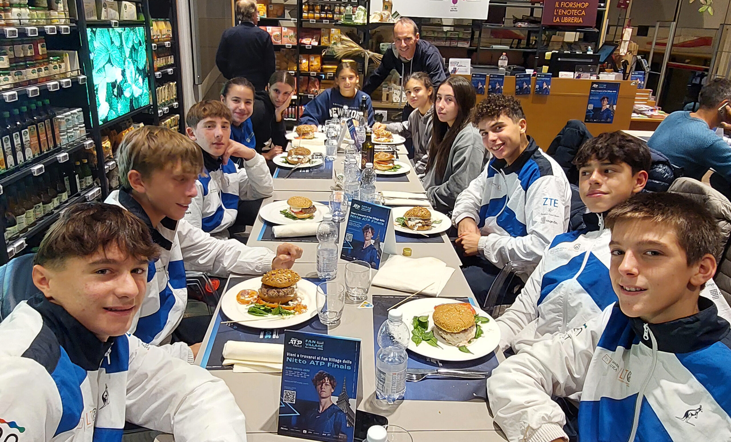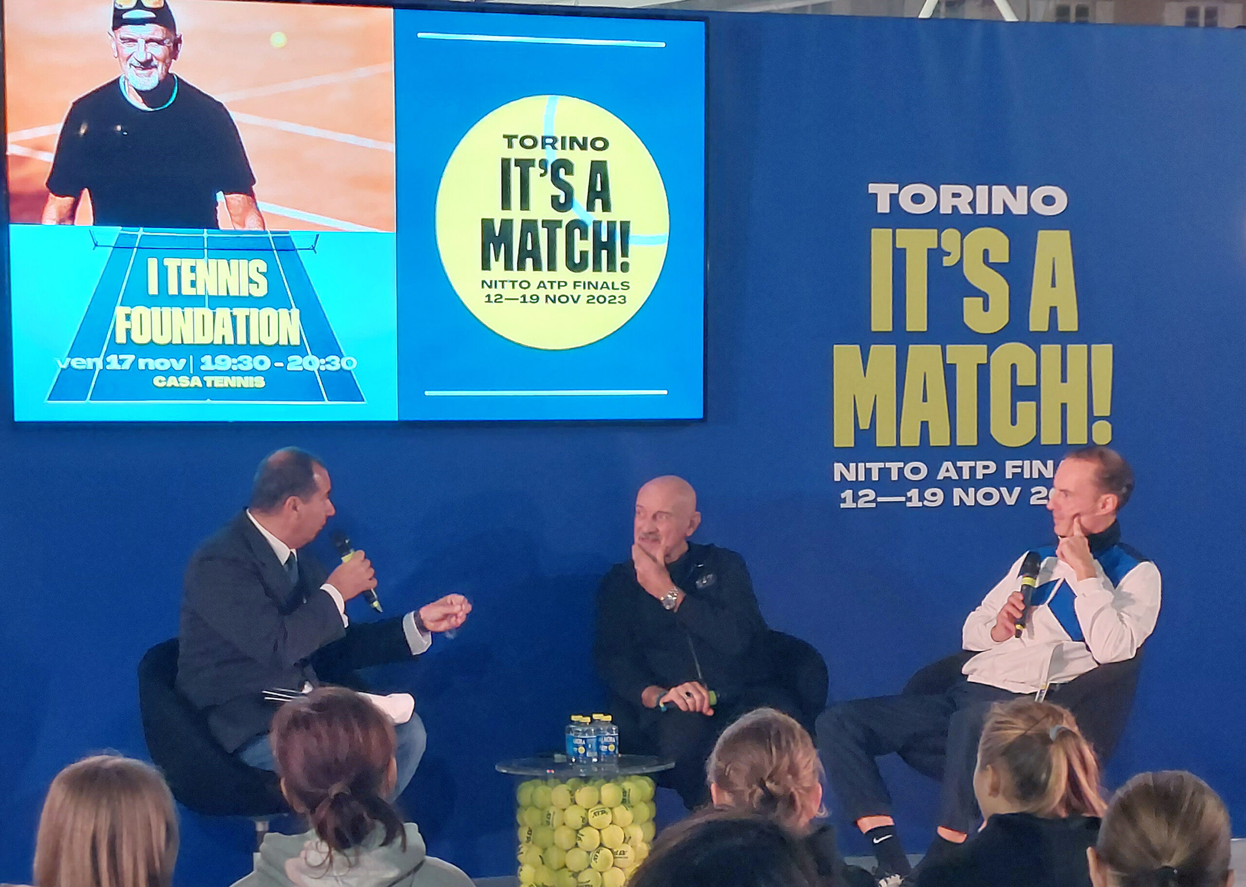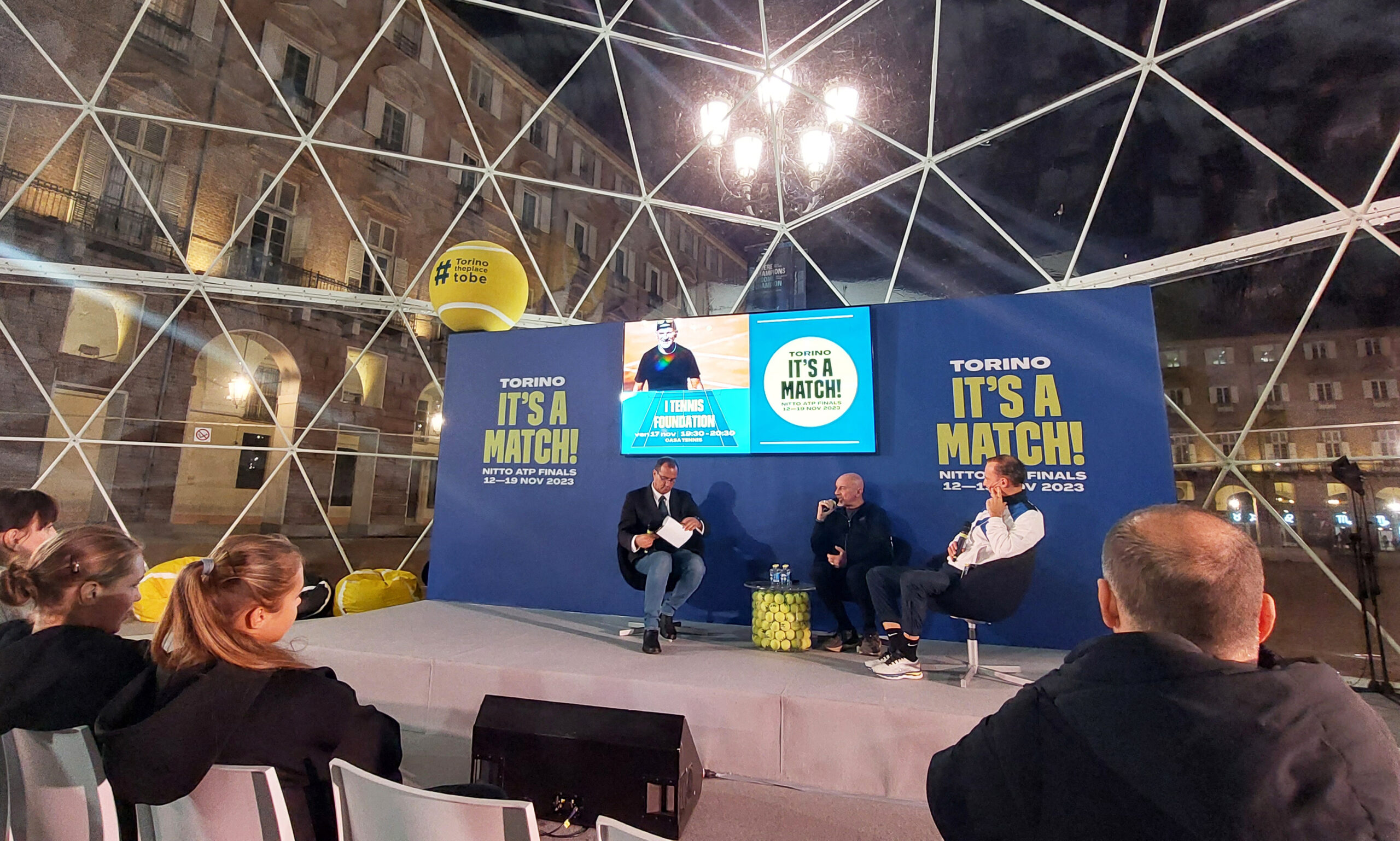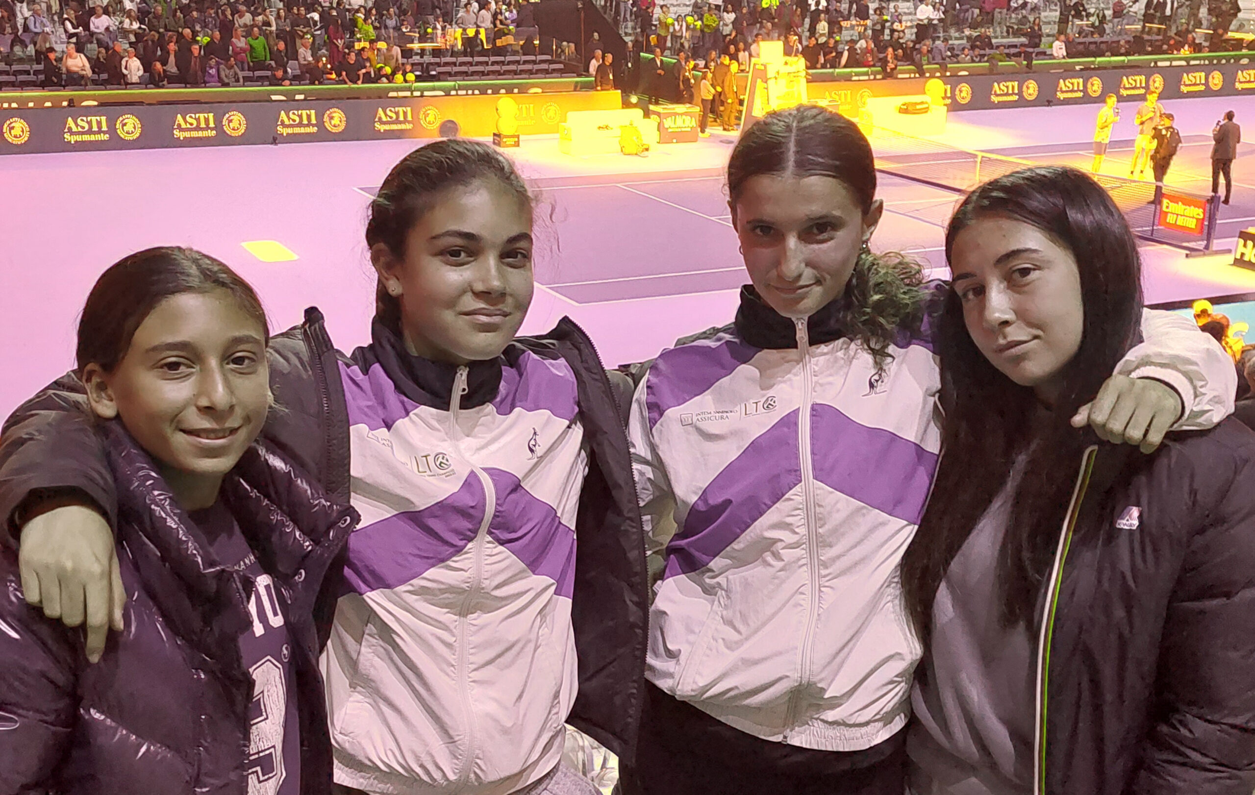 Il team al completo del progetto benefico dedicato a 12 giovani tennisti italiani ha poi vissuto due momenti speciali: l’integrazione in campo con le ragazze ucraine di I Tennis Foundation for Ukrainian Kids e le partite al PalaAlpitour per ammirare da vicino i campionissimi di oggi, da Djokovic, Alcaraz, Medvedev fino alle imprese di Jannik Sinner.