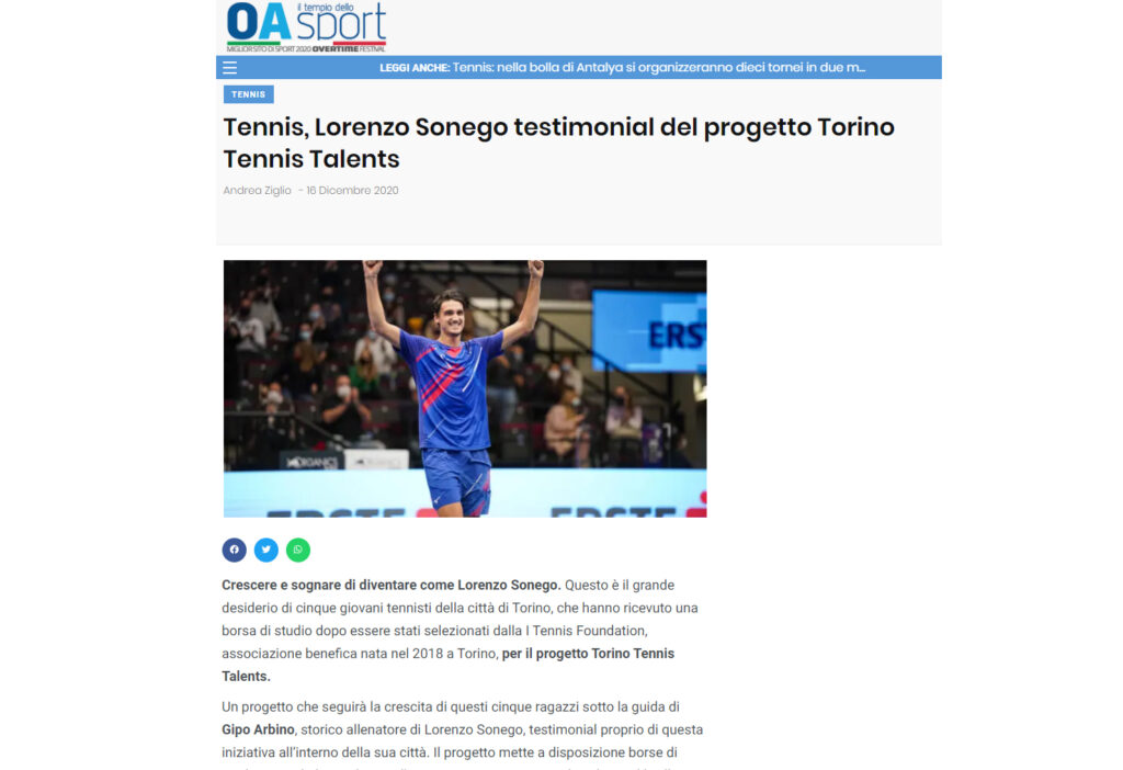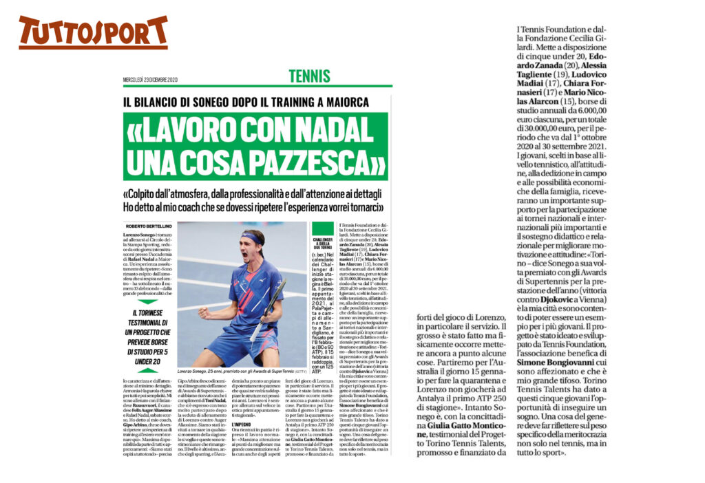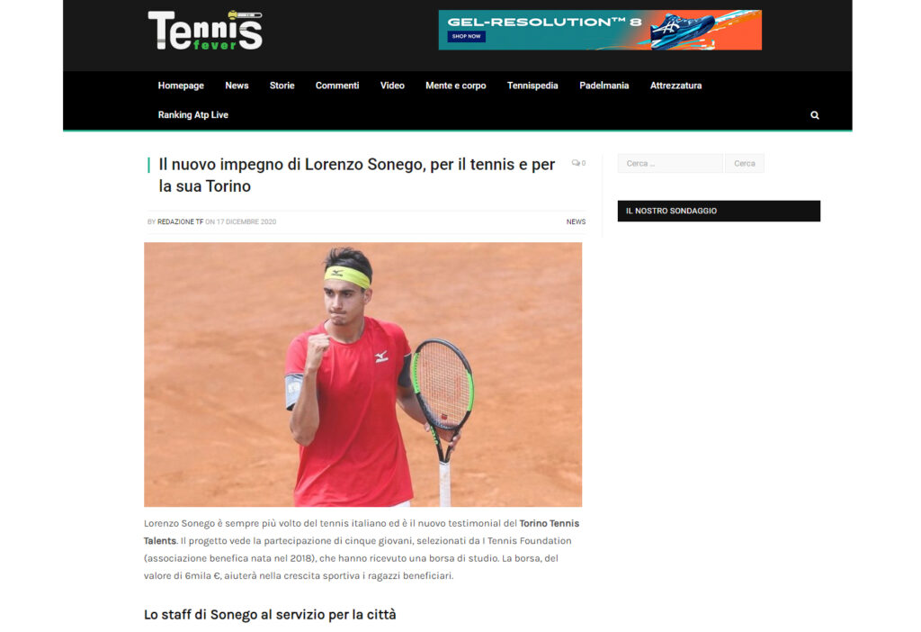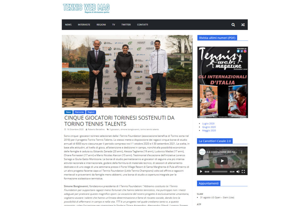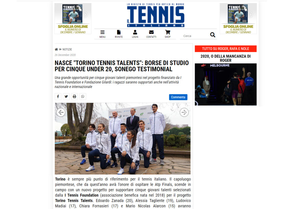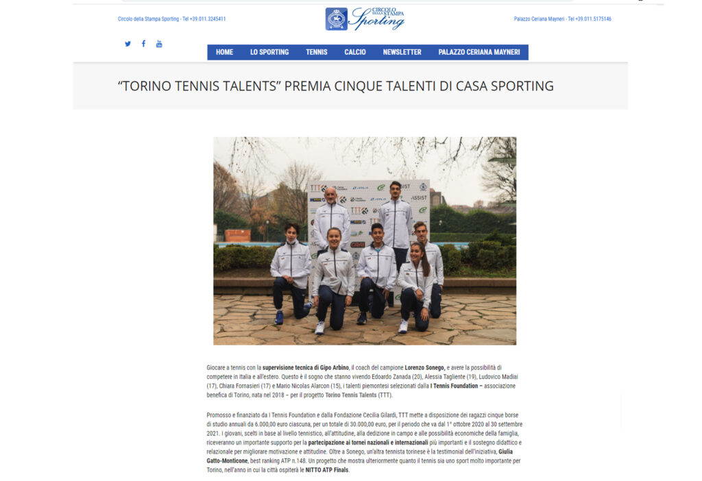 Ecco una selezione della rassegna stampa (cartacea e digitale) relativa alla presentazione del progetto Torino Tennis Talents, il servizio del TG di Rai 3 andato in onda giovedì 17 dicembre e l’intervista a Simone Bongiovanni, founder e presidente di I Tennis Foundation, su Sky Sport.