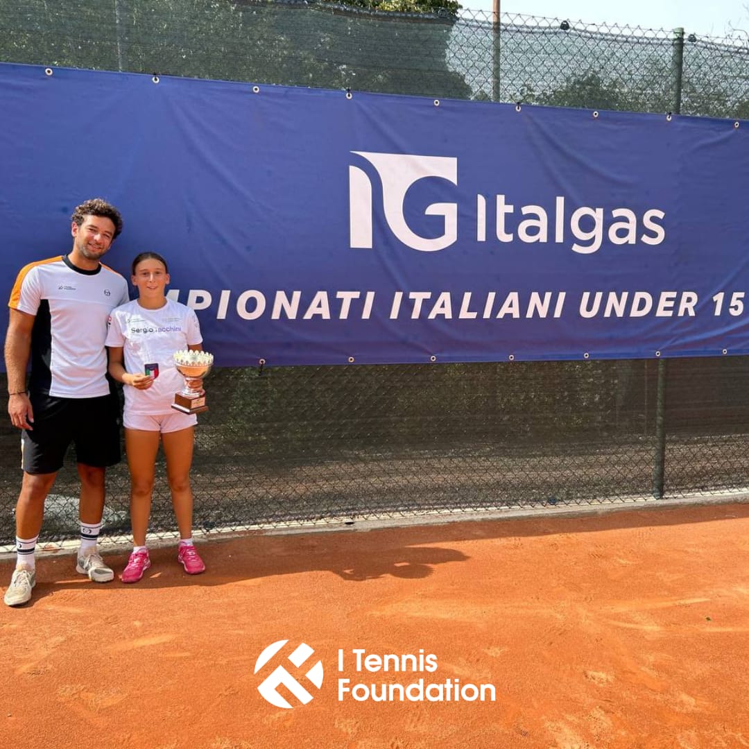 Per il secondo anno consecutivo Martina Cerbo si toglie la splendida soddisfazione di trionfare ai Campionati Italiani Under 15. Dopo il successo nel 2023 in doppio, Martina si conferma regina della specialità vincendo il tricolore in coppia con Beatrice Gatti proprio a Roma, la sua città. Ottimo percorso di Martina, borsista per il terzo anno consecutivo del programma Intesa Sanpaolo Assicura Little Tennis Champions, anche nel tabellone di singolare dov’è arrivata fino alle semifinali perdendo di un soffio proprio dalla sua compagna di doppio.