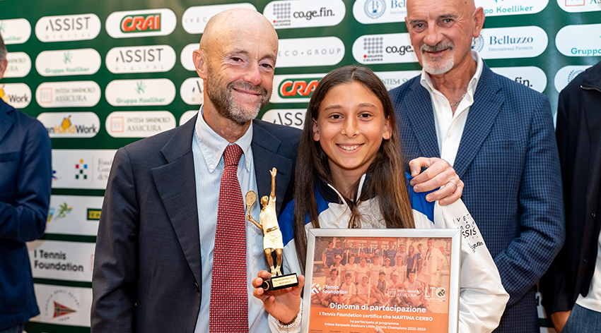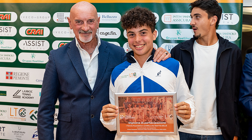 Una conclusione davvero speciale per i borsisti di Intesa Sanpaolo Assicura Little Tennis Champions 2022-23. Nello splendido scenario del Circolo del Ministero degli Esteri di Roma, I Tennis Foundation ha organizzato la serata conclusiva del progetto dedicato ai 12 talenti italiani e ha presentato il programma benefico I Tennis Foundation for Ukrainian Kids, volto a ospitare un anno a Torino quattro ragazzine ucraine e le loro madri sostenendole sia nella formazione tennista che scolastica, nonché nella partecipazione ai tornei Tennis Europe.